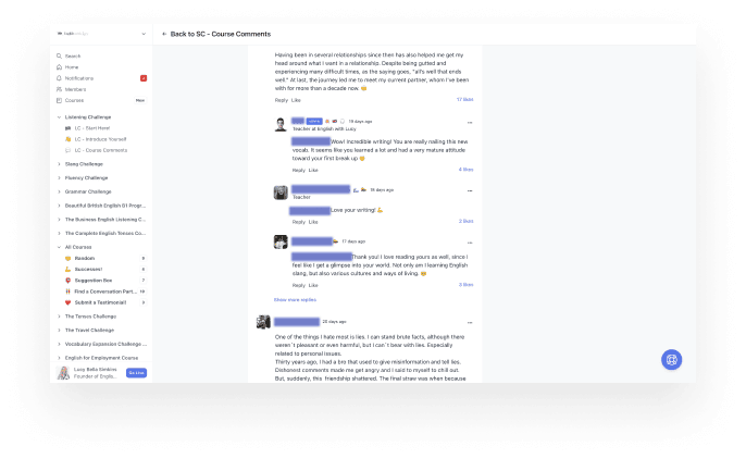 Lucy's challenge was amazing! I improved my vocabulary and listening skills. She's got a great sense of humour and is polite. I really recommend this challenge!