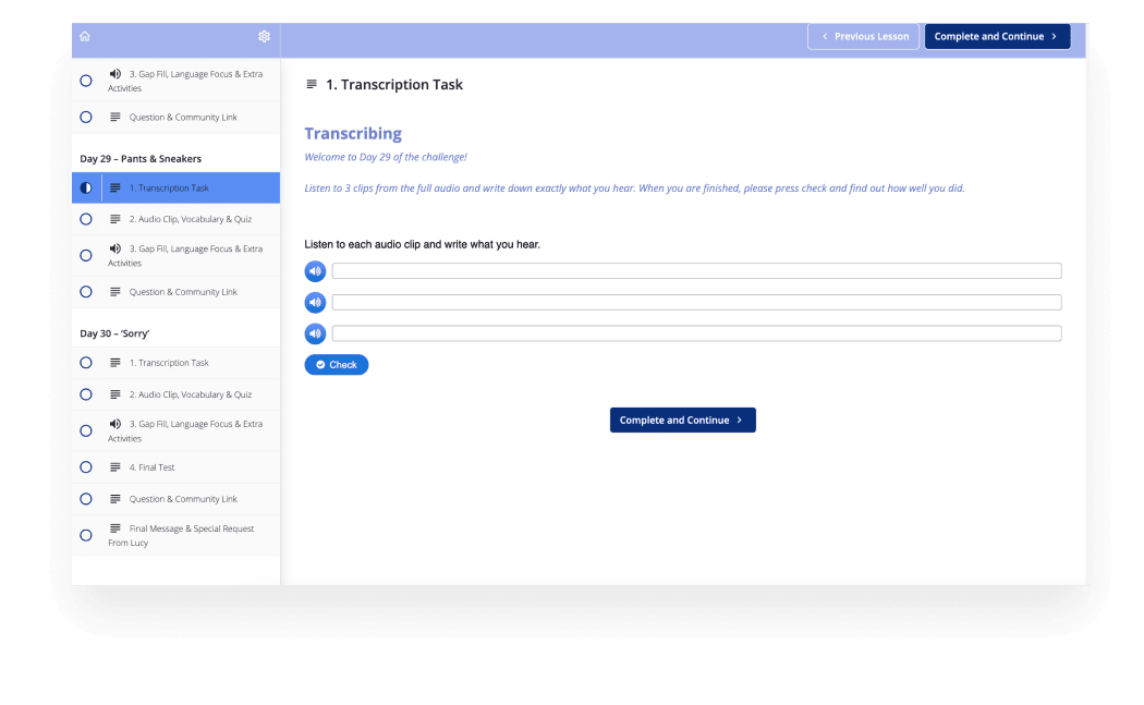 ✅ Each day in this challenge, you have 3 transcription exercises!