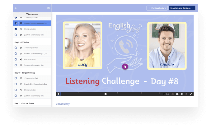 Lucy's challenge was fun and engaging. The exercises provided were amazing and challenging. They help you in improving your listening skills and pronunciation!