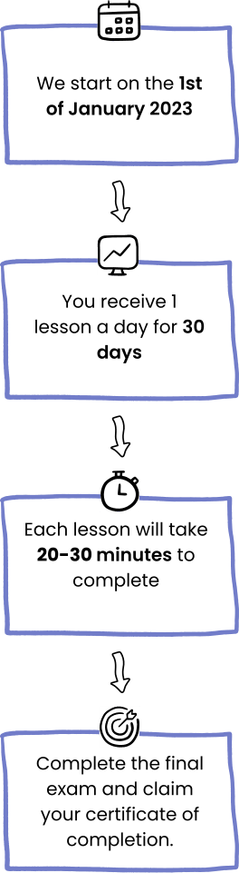 Exercises testing you on what you learnt in previous days - These will boost your memory skills and help you retain what you’ve learnt for life!