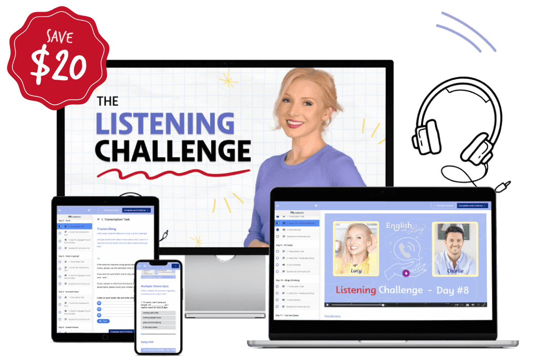 I am doing my eighth challenge in August, I cannot believe that I have learnt so many different levels of vocabulary as well as listening skills in the past seven months. I am looking forward to taking more challenges from English with Lucy!
